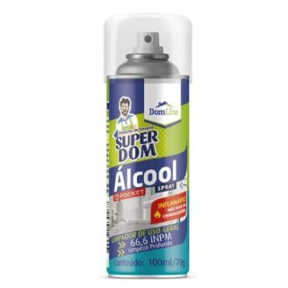 Super Dom ÁLcool Aerosol 100mlDesenvolvido para a limpeza geral, com fácil aplicação e ação bactericida. Imagem meramente ilustrativa. O produto pode ter variação de cor ou desenho, porém as características gerais são as mesmas especificadas na descrição do produto.MODO DE USAR:Aplique o produto, para a desinfecção, diretamente na superfície que deseja limpar, evitando dirigir sobre animais, plantas, alimentos, chamas ou superfície aquecida. Espalhe com um pano e deixe agir por 10 minutos e logo em seguida passe um pano seco. Siga o procedimento quantas vezes achar necessário.ESTE ANÚNCIO CONTÉM: 01 UNIDADE DE SUPER DOM ÁLCOOL AEROSOL 100ML
