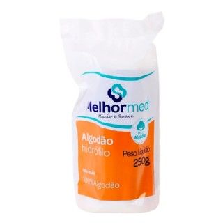 Algodão Hidrófilo Melhormed 250gr RoloUtilizado para higienização, anti-sepsia da pele, amplo uso no ambiente hospitalar na absorção de líquidos e secreções desde que o algodão esteja envolto com gaze evitando o desprendimento de fibras.