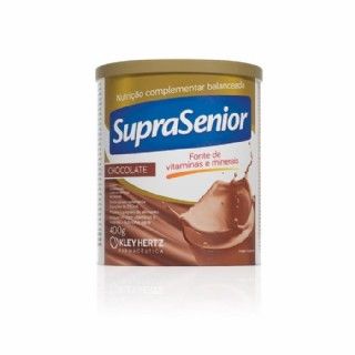 Suprasenior Suplemento Alimentar 400g Chocolate Suprasenior Suplemento Alimentar 400g Chocolate INDICAÇÕES SupraSenior é uma linha de produtos para nutrição complementar compostos por vitaminas, minerais, fibras e macronutrientes, entre eles a proteína. Sua fórmula foi desenvolvida para suplementar a alimentação de pessoas acima de 40 anos e contém 27 vitaminas e minerais, como as vitaminas B1,B2,B6,B12,E,K,C,D, ácido fólico, cálcio, ferro, zinco, selênio, biotina entre outros. SupraSenior possui em sua composição um mix de lipídios que garante um produto isento de gorduras trans e com baixo teor de gorduras saturadas além de conter um mix de fibras composto de polidextrose, inulina e oligofrutose. Contém lacre peel off que garante maior segurança e praticidade ao abrir a lata. Acompanha colher medidora dentro da lata. SupraSenior é Isento de glúten. Cada lata rende aproximadamente 8 porções de 230ml. Disponível nos sabores Baunilha, Chocolate, Banana e Morango.